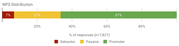 在 2018 年,我们首先提出了“您会建议…” Net Promoter Score[3] (NPS) 的问题,得到 61 分。今年,我们的 NPS 结果在统计上保持不变 60(67% "promoters" 减去 7% "detractors")。