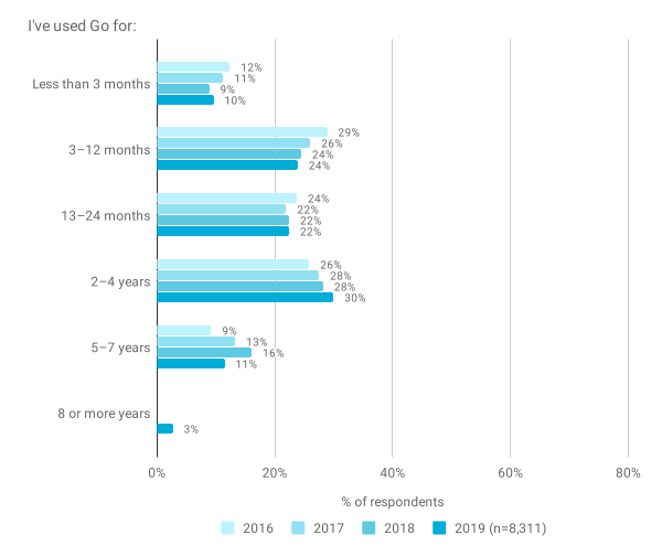 去年的两倍!: https://blog.golang.org/survey2018-results